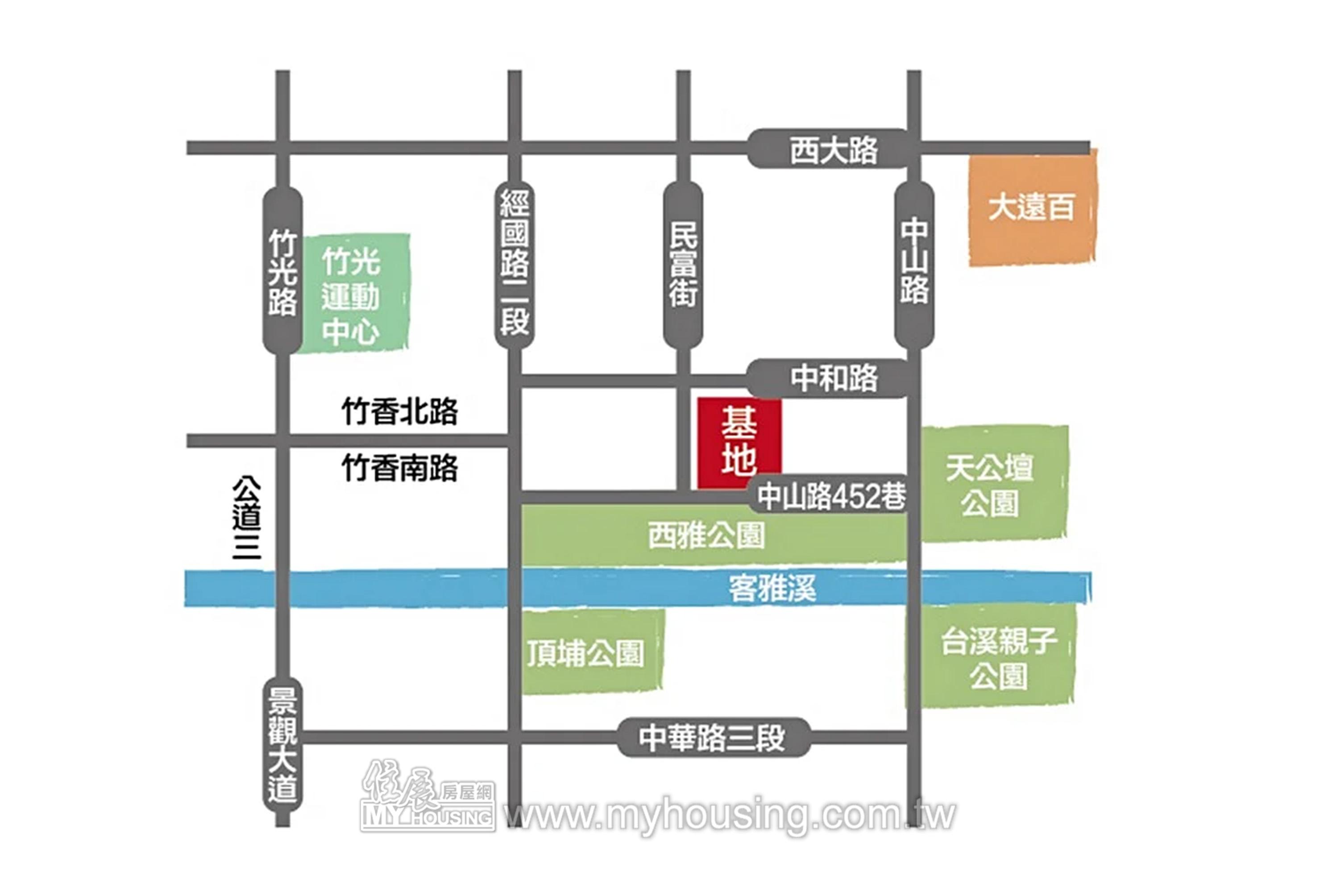 基地713坪,面客雅溪,鄰近西雅公園,規劃58戶住家,主力為4房,雙併設計。