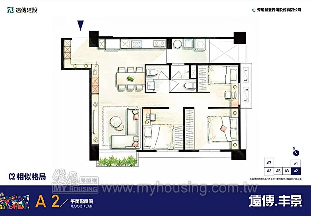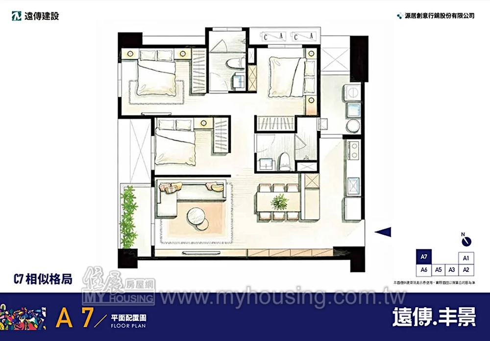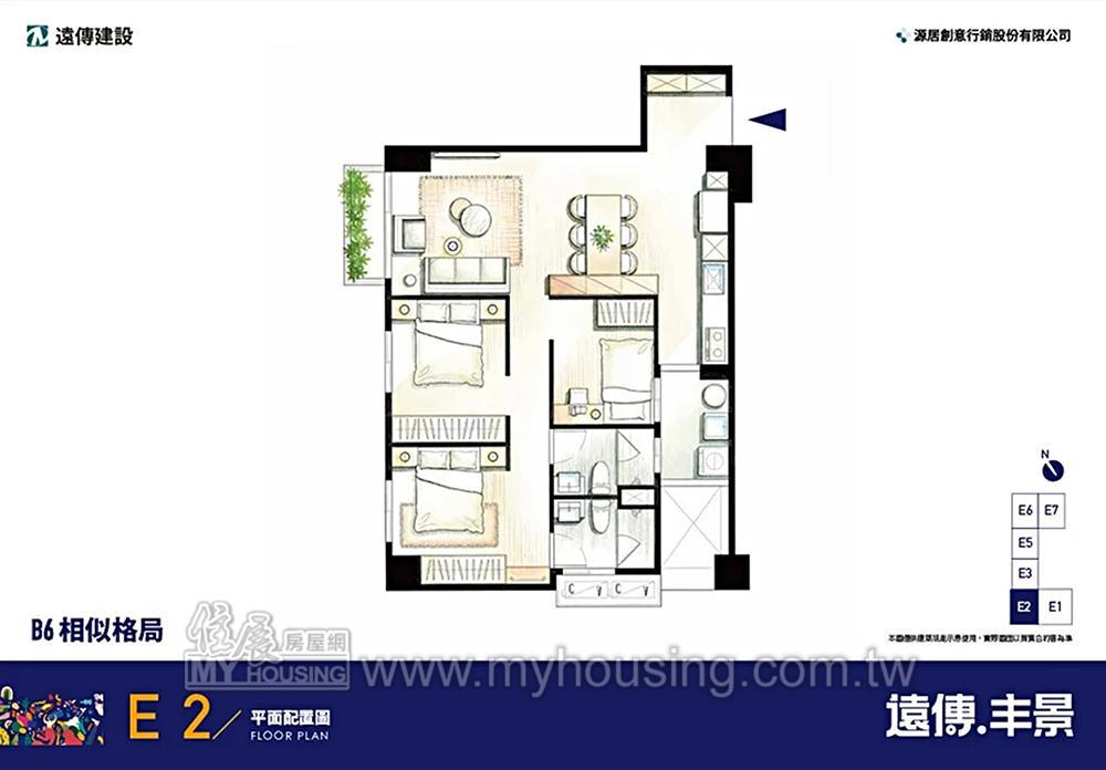 基地2569坪,距新豐國小約6分鐘車程,主力為3房,訴求具全齡化公設、飯店式管理。