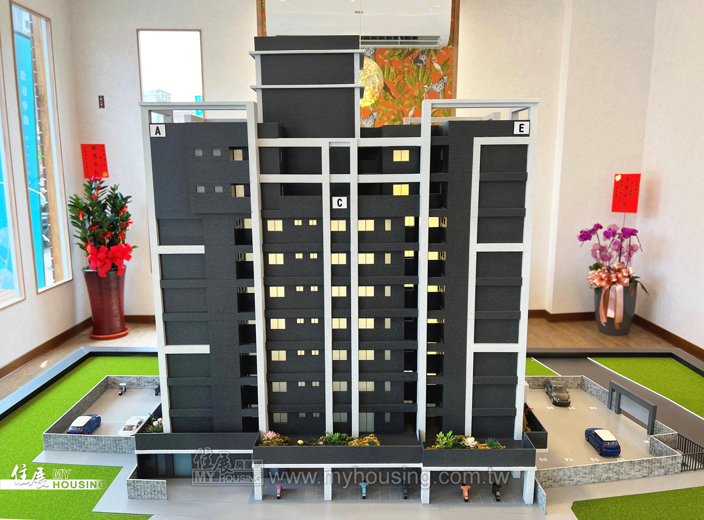 基地418坪,距瑞興國小、精華國中不遠,主力為3房,總價888萬起(含一樓平面車位)。