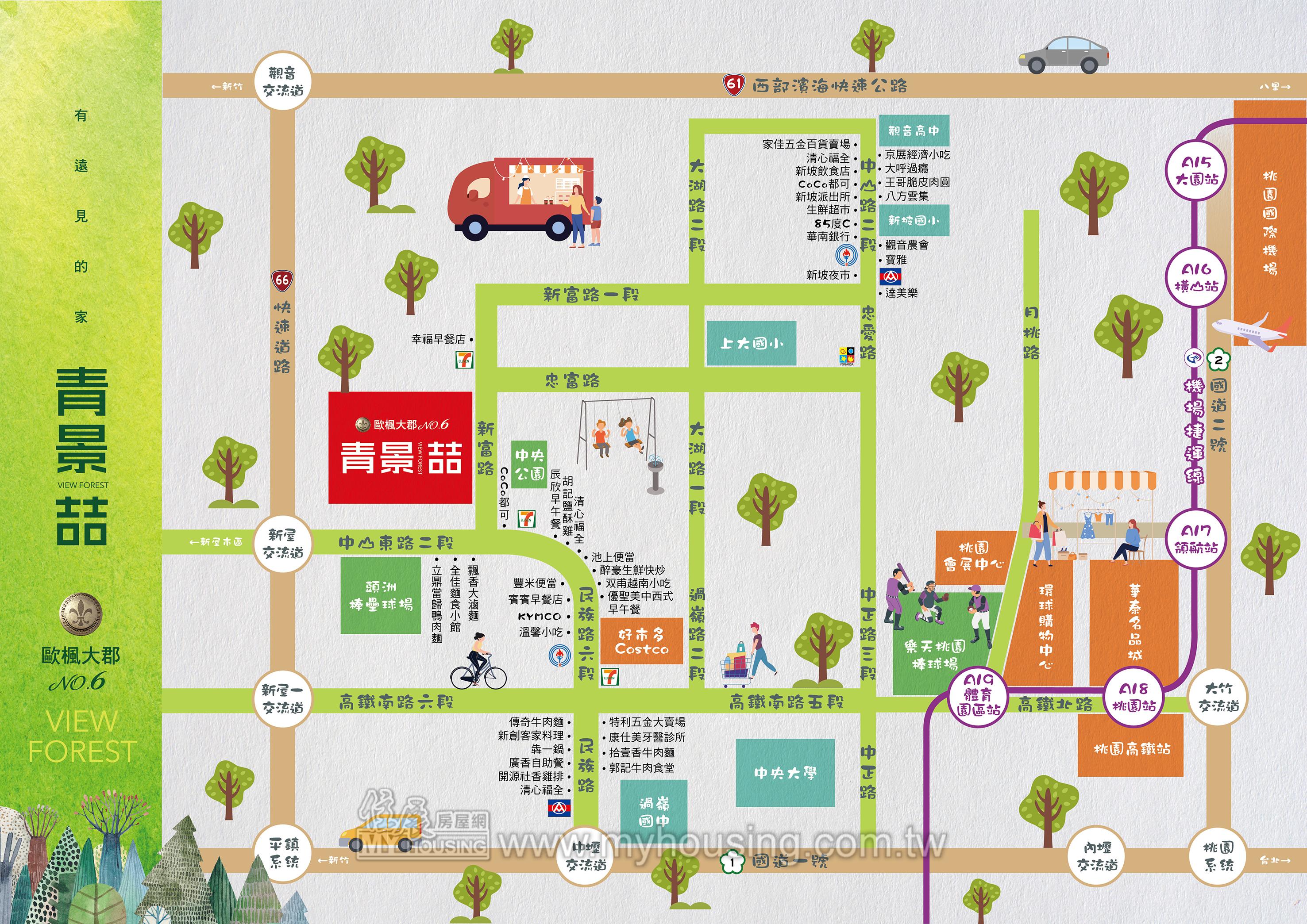 位富源地區,至中壢好市多賣場約5分鐘車程。規劃2~3房,具多種風格實品屋供參觀。