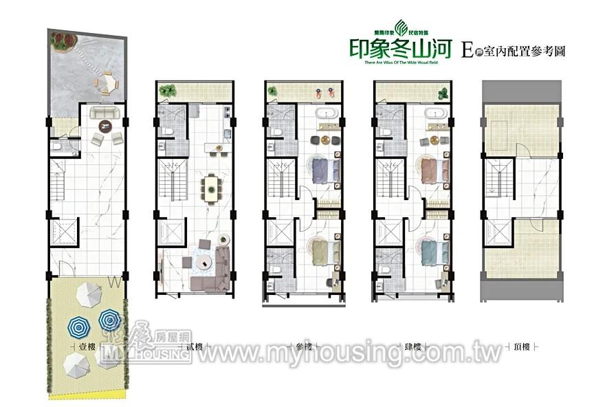基地228.5坪,距五結國小約8分鐘車程,規劃6戶透天,地坪約34~44坪,採預約賞屋。