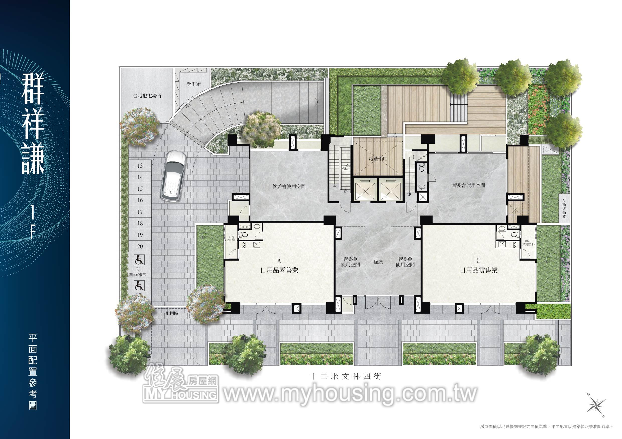 休閒公設: 健身房 / 交誼會客室 / 閱覽室 / 中庭花園