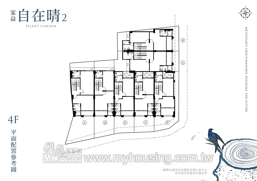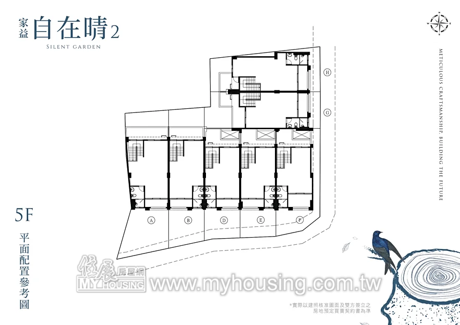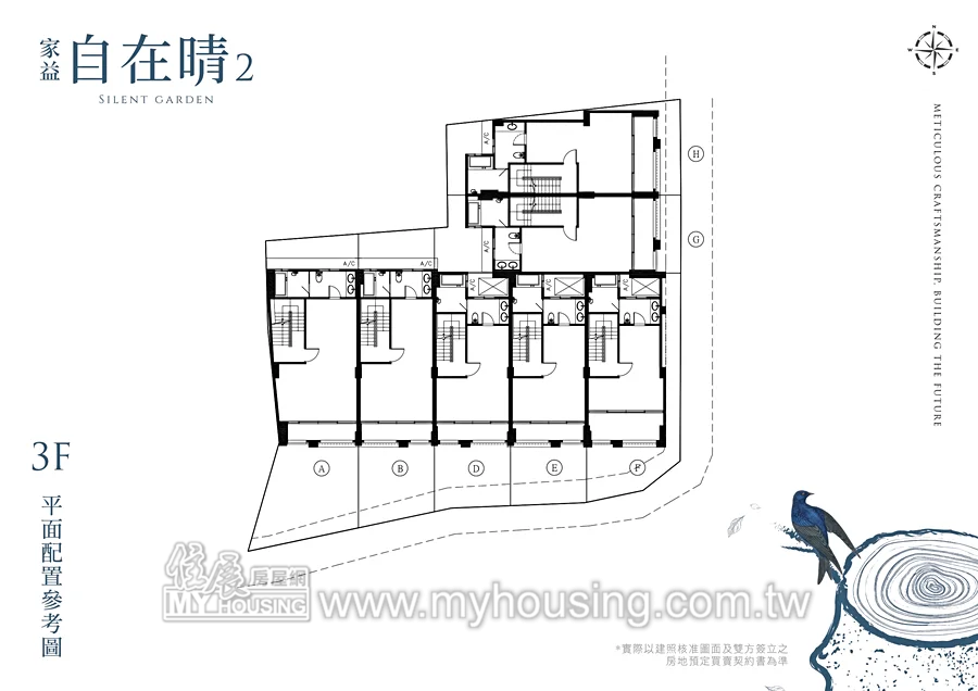 基地178.7坪,規劃7戶透天,面寬約5.1米,總價2957萬起,於溪州路139號旁設接待。