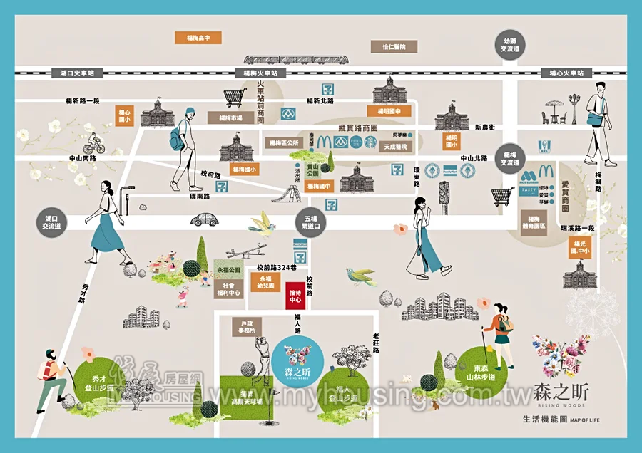 週邊環境: 社區公園 / 鄰風景區 / 保護區 / 國高中、小學 / 面臨主幹道或次要幹道 / 近交流道