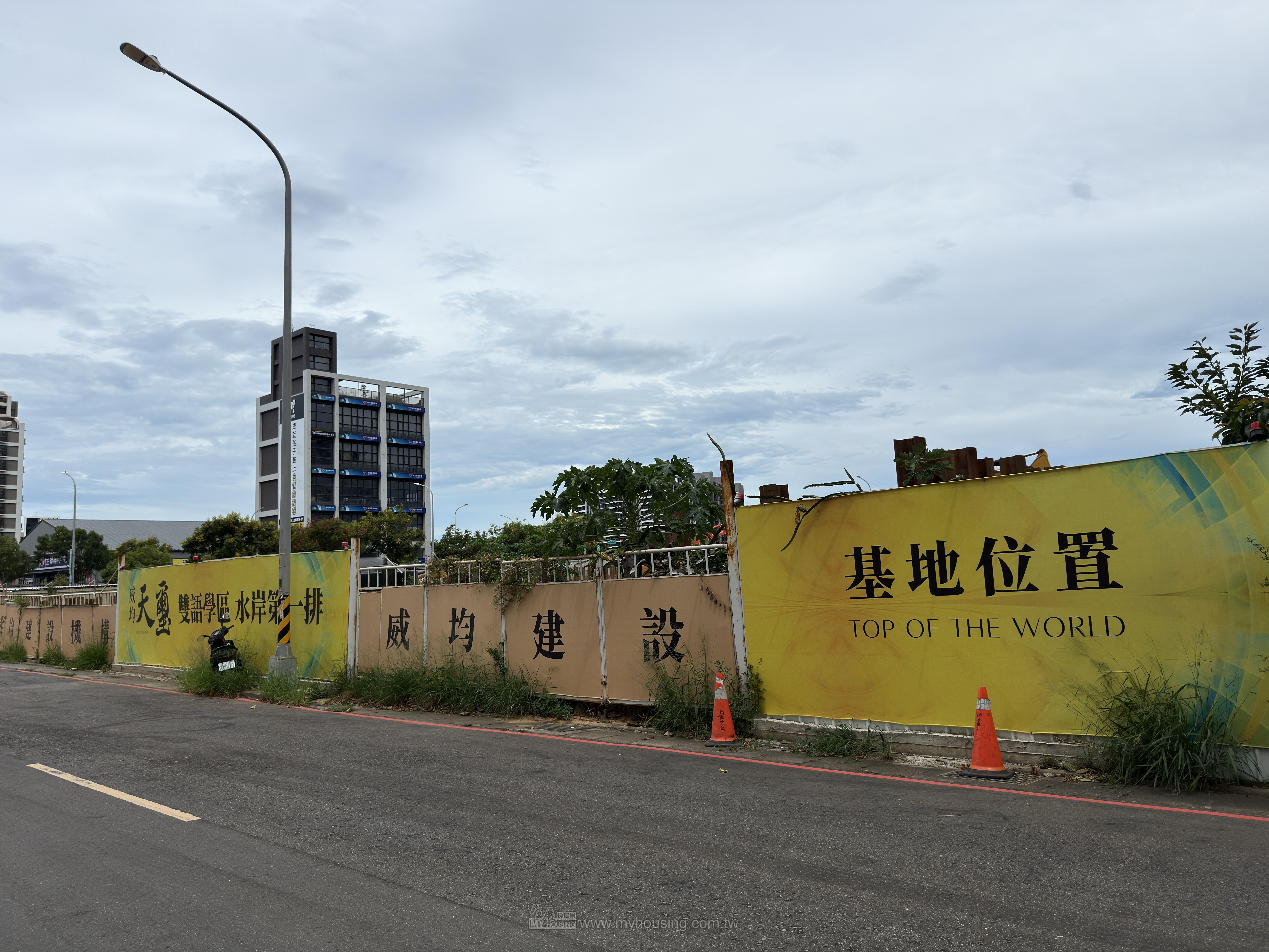 基地1429.7坪,面老街溪,鄰近兒十公園,為2~4房,於領航南路二段289號設接待。