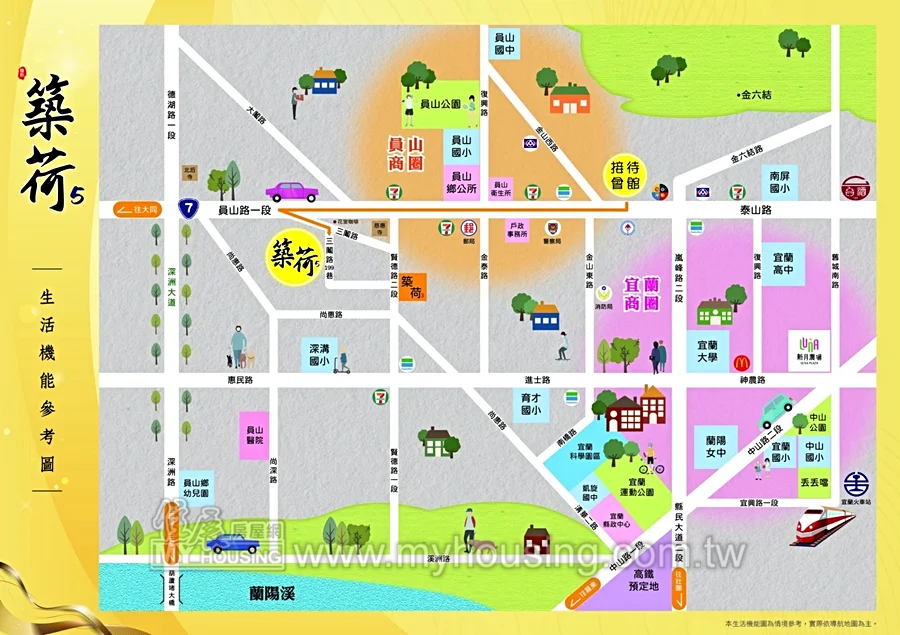 基地1048.7坪,距員山國小約4分鐘車程,規劃37戶透天,訴求首付58萬起。