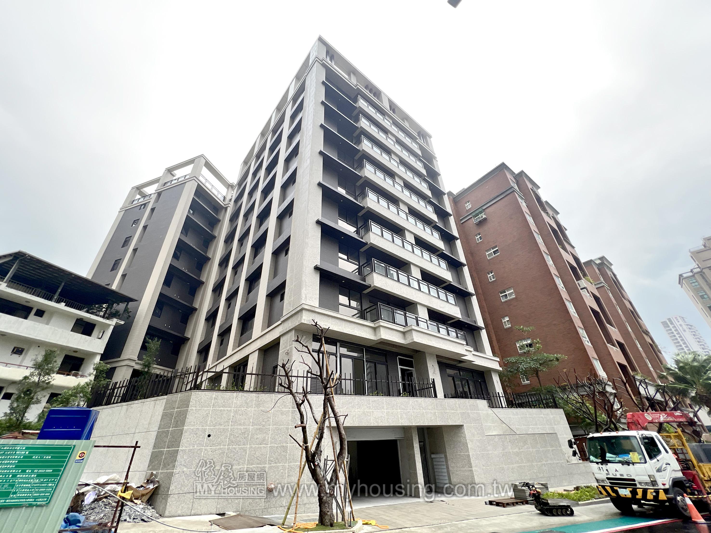 基地370.7坪,距捷運紅樹林站約300公尺,為3~4房、單層雙併,強調單純性。