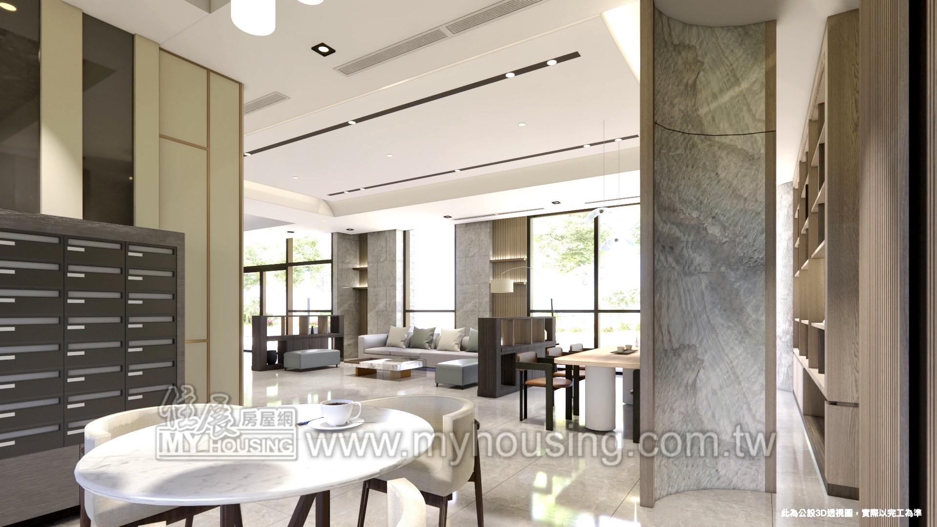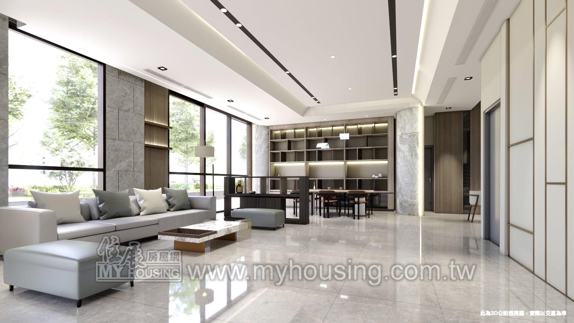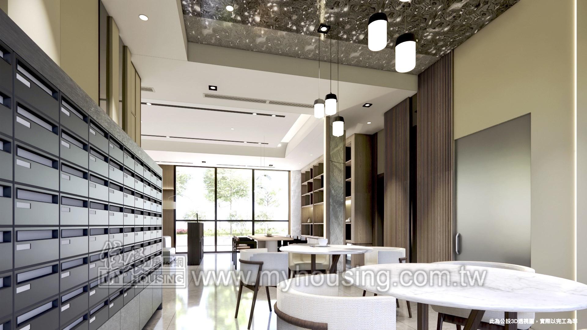 休閒公設: 健身房 / 迎賓大廳 / 交誼會客室 / 閱覽室 / 中庭花園