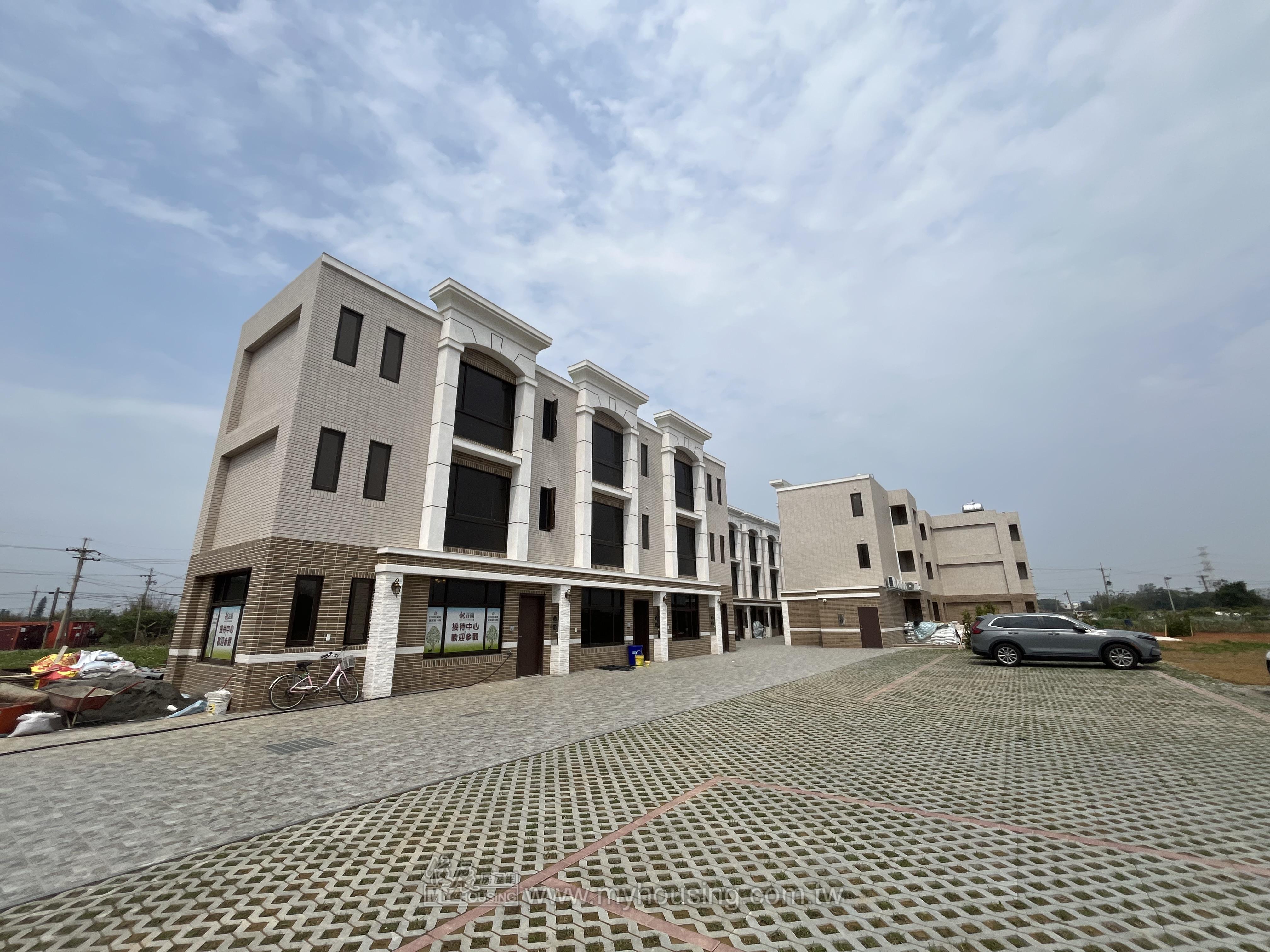 基地距新屋市區約7分鐘車程,規劃透天住家,總價1368萬起,訴求戶戶配農地。