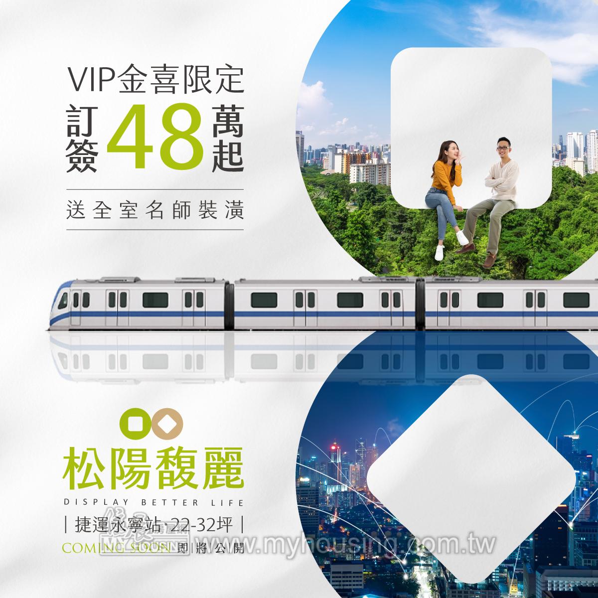 基地1332.9坪,面土城國中,為2~3房,強調訂簽48萬起,於中央路三段93號旁設接待。